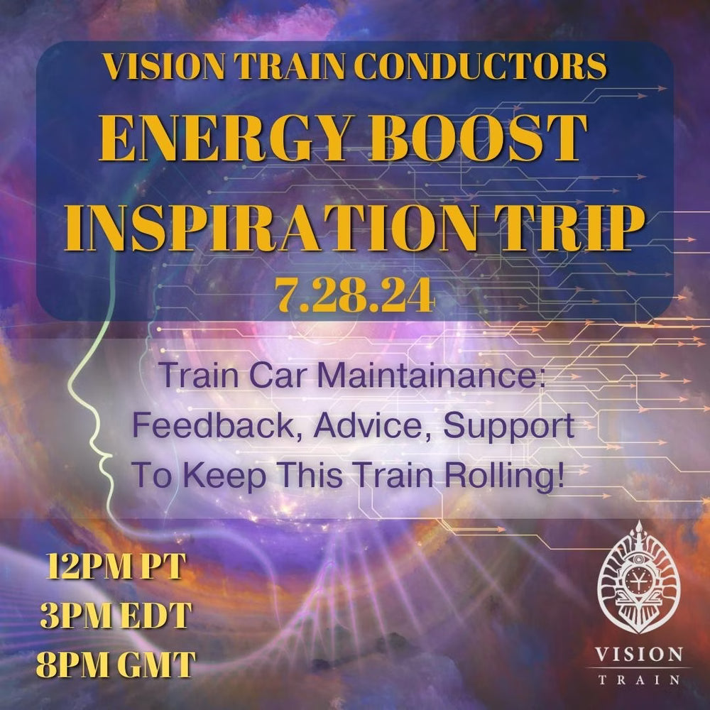 If you feel called, begin by stepping onto the Train. Join the Vision Train Station (our mighty network), attend Trips on the Global Art Jam Zoom, and connect with fellow Conductors. When you feel aligned, apply to begin sharing your own offerings within the collective flow.