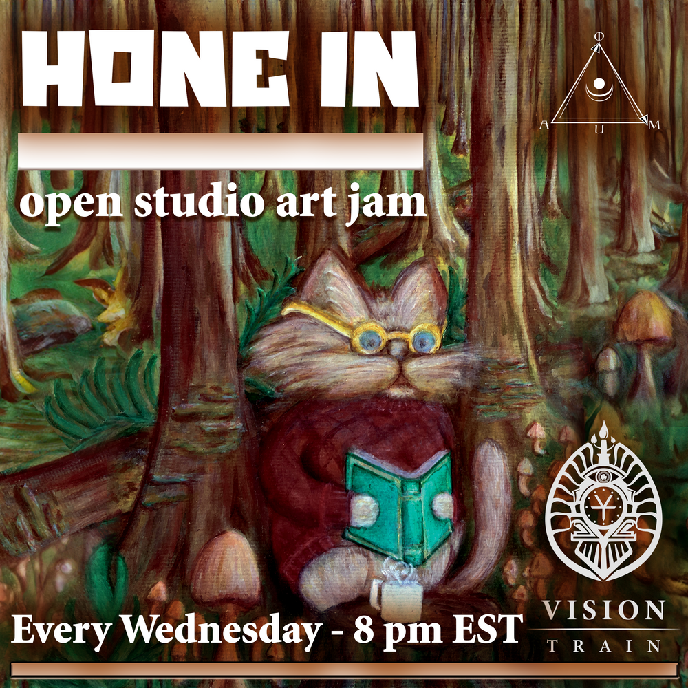 Vision Train Conductors are a core circle of creatives devoted to cultivating a supportive, co-creative studio space. Aboard our 24/7 virtual space station on Zoom, we hold space and guide the flow of collective and creative journeying in community — through music, art jams, workshops, and shared inspiration.